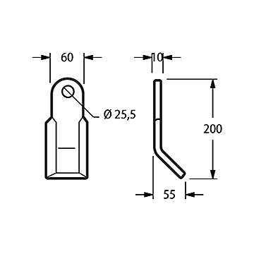 Lunghezza - LU 205 mm Altezza - LA 55 mm Diametro del foro 25.5 mm Larghezza piatto 60 mm Spessore piatto 10 mm Forma Y peso netto 0.97 kg