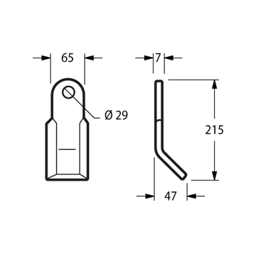 Coltello per trincia Foro 29 mm Piatto 65x7 mmLunghezza - LU 215 mm Altezza - LA 47 mm Diametro del foro 29 mm Larghezza piatto 65 mm Spessore piatto 7 mm Forma Y peso netto 0.7 kg