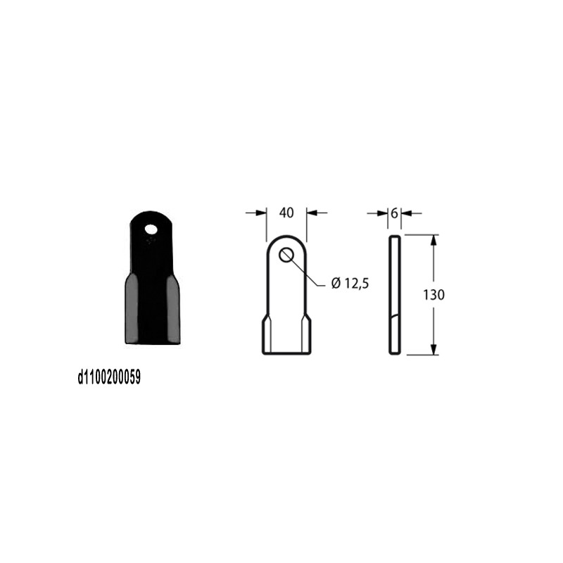 Coltello per trincia Foro 12.5 mm Piatto 40x6 mmOEM 0901159Lunghezza - LU 130 mm Altezza - LA 0 mm Diametro del foro 12.5 mm Larghezza piatto 40 mm Spessore piatto 6 mm Forma I peso netto 0.225 kg