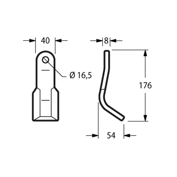 Coltello per trincia Foro 16.5 mm Piatto 40x8 mmLunghezza - LU 178 mm Altezza - LA 40 mm Diametro del foro 16.5 mm Larghezza piatto 40 mm Spessore piatto 8 mm Forma Y peso netto 0.45 kg