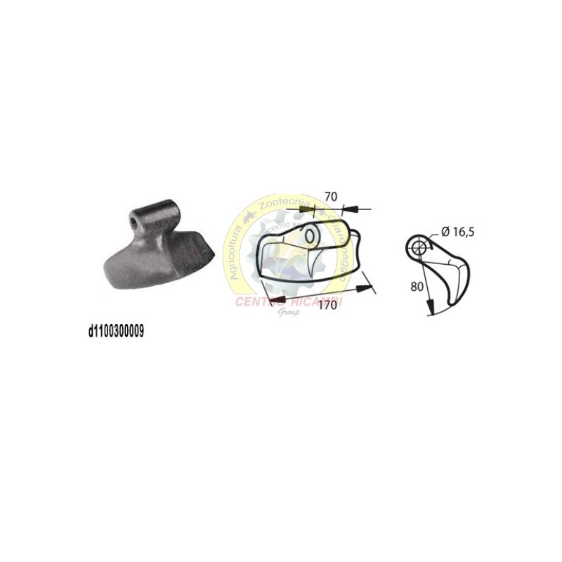 Mazza per trincia Diametro del foro 16.5 mmLarghezza del foro di montaggio - A 70 mm Larghezza di taglio - B 170 mm Diametro del foro 16.5 mm Raggio - R 80 mm peso netto 2.17 kg