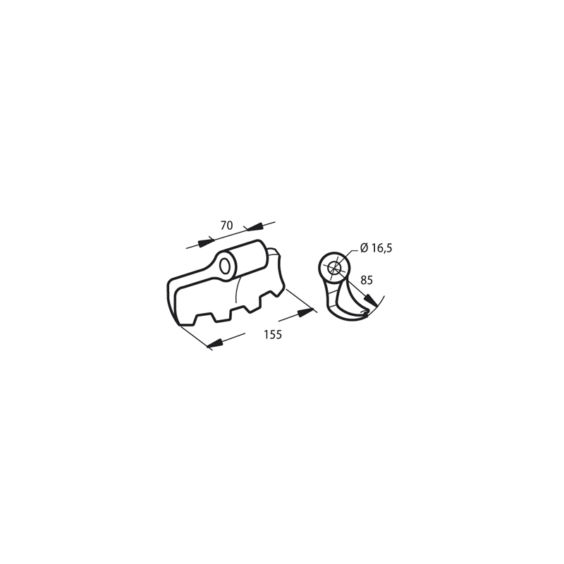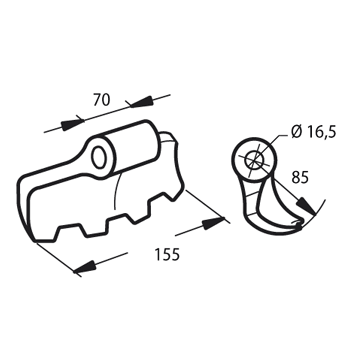Mazza per trincia FISCHER Diametro del foro 16.5 mmLarghezza del foro di montaggio - A 70 mm Larghezza di taglio - B 165 mm Diametro del foro 16.5 mm Raggio - R 88 mm peso netto 1.7 kg