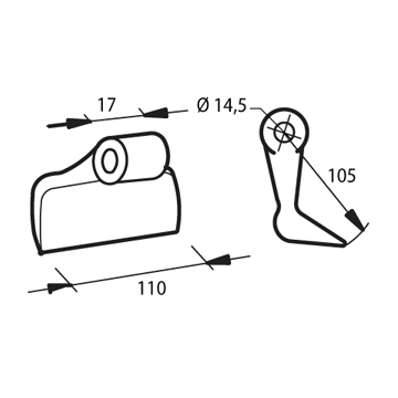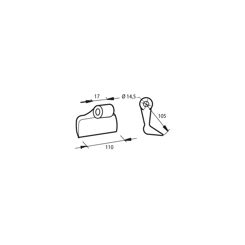 Mazza per trincia Diametro del foro 14.5 mmOEM 12014400Larghezza del foro di montaggio - A 17 mm Larghezza di taglio - B 110 mm Diametro del foro 14.5 mm Raggio - R 105 mm peso netto 0.83 kg