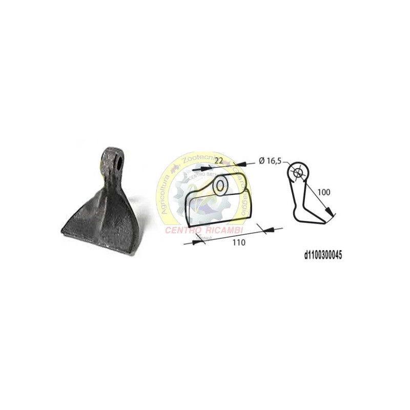 Mazza per trincia Diametro del foro 16.5 mmOEM 09.01.134 0901134Larghezza del foro di montaggio - A 22 mm Larghezza di taglio - B 110 mm Diametro del foro 16.5 mm Raggio - R 100 mm peso netto 0.8 kg