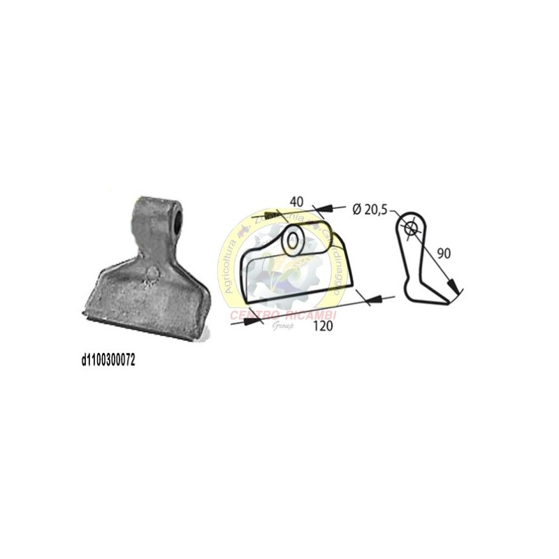 Mazza per trincia Diametro del foro 20.5 mmLarghezza del foro di montaggio - A 40 mm Larghezza di taglio - B 120 mm Diametro del foro 20.5 mm Raggio - R 90 mm peso netto 1.15 kg