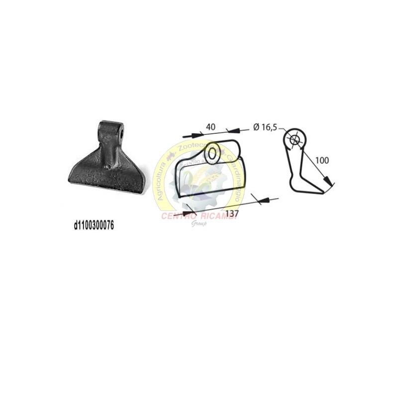 Mazza per trincia Diametro del foro 16.5 mmOEM MU000306E 2405003055 ML/007 ML007 AP-00889 AP00889 TFB/Y180Larghezza del foro di montaggio - A 40 mm Larghezza di taglio - B 137 mm Diametro del foro 16.5 mm Raggio - R 100 mm peso netto 1.15 kg