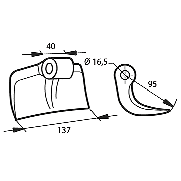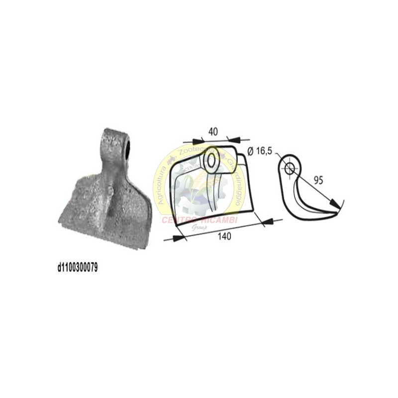 Mazza per trincia Diametro del foro 16.5 mmOEM T21004030R MP/0008 MP0008 0056123 930000024Larghezza del foro di montaggio - A 40 mm Larghezza di taglio - B 140 mm Diametro del foro 16.5 mm Raggio - R 95 mm peso netto 1.5 kg