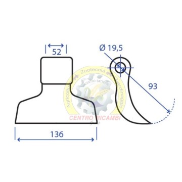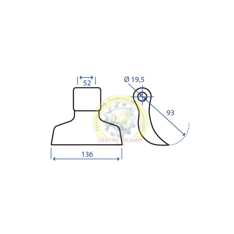 Mazza per trincia Diametro del foro 19.5 mmLarghezza del foro di montaggio - A 51 mm Larghezza di taglio - B 136 mm Diametro del foro 19.5 mm Raggio - R 95 mm peso netto 1.88 kg