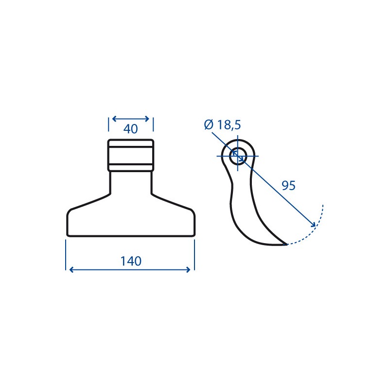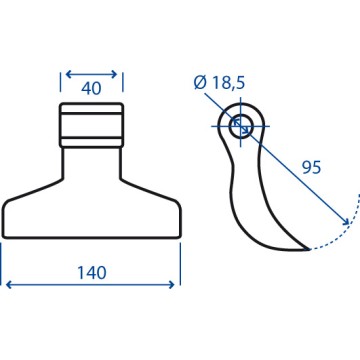 Mazza per trincia Diametro del foro 18.5 mmLarghezza del foro di montaggio - A 40 mm Larghezza di taglio - B 140 mm Diametro del foro 18.5 mm Raggio - R 95 mm peso netto 1.5 kg
