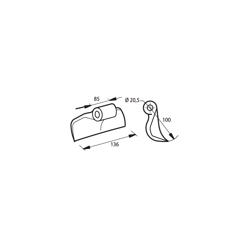 Peso Kg: 2.300Diametro Foro 1: 20.5Larghezza Taglio: 136Supporto: 85Raggio di lavoro: 100