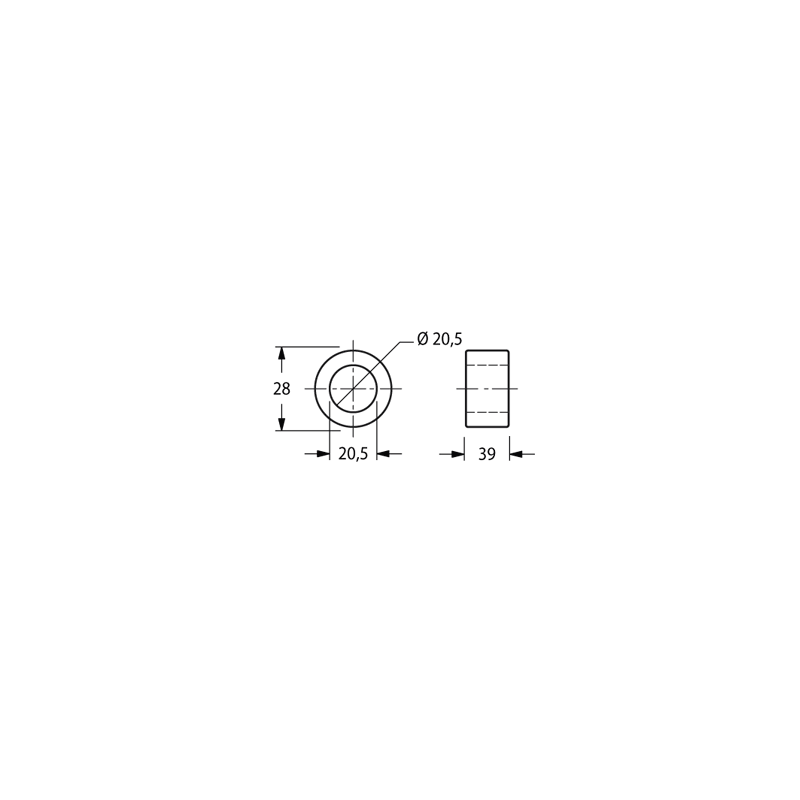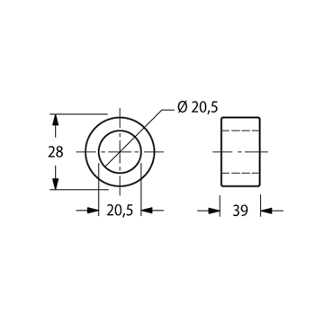 Boccola Diametro 20.5x28 mm Altezza 40 mmDiametro interno 20.5 mm Diametro esterno 28 mm Altezza 40 mm peso netto 0.09 kg