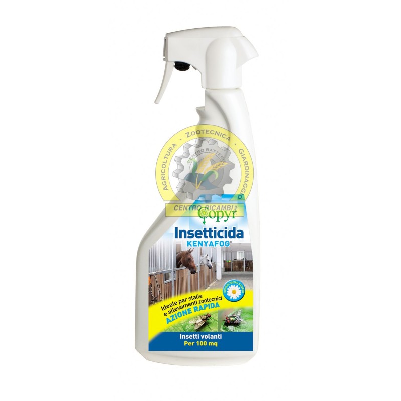 Insetticida liquido pronto all???uso particolarmente raccomandato per la lotta contro mosche, zanzare, vespe, scarafaggi, pesciolini d???argento, pulci, pidocchi, acari, che infestano allevamenti e stalle.